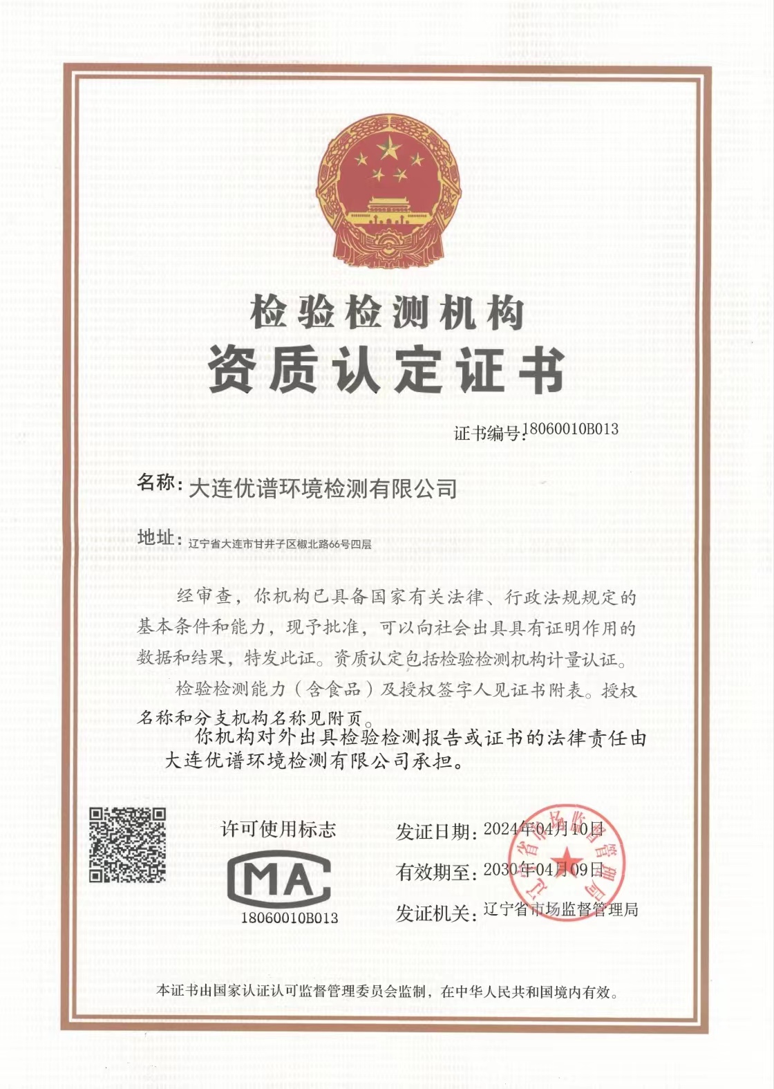 大連優(yōu)譜環(huán)境檢測(cè)有限公司環(huán)境檢測(cè)CMA資質(zhì)在遼寧省質(zhì)量技術(shù)監(jiān)督局網(wǎng)站上查詢。